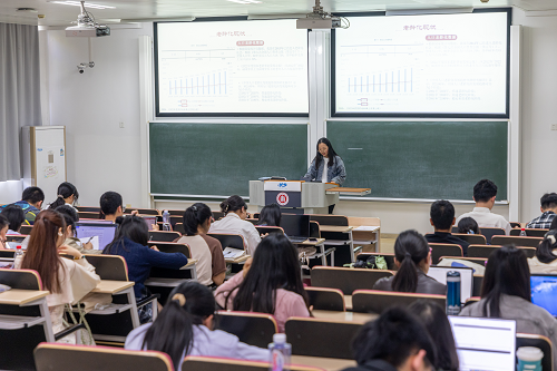 第七组以“为‘积极应对人口老龄化’注入青春力量”为主题,分别从政策文本解读、老龄化现状、公共管理与老龄化、青年的力量四个方面进行汇报,总结出青年人应该承担起社会责任,以更好地适应和解决人口老龄化带来的问题,参与社会治理。