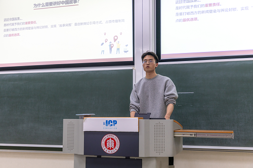 第五组以“讲好中国故事,传播好中国声音”为主题,提出增强中华文明传播力影响力的五点要求,并详细介绍了讲好中国故事的重要性,提醒青年学子要不忘来时路,坚定跟党走,做新时代的追梦人。