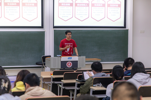 第一组以“增进民生福祉,提高人民生活福祉”为主题,从背景介绍、内涵解读、案例分享、青年人的做法感悟四个方面进行汇报,指出要重视民生发展,不断提高人民的幸福感。
