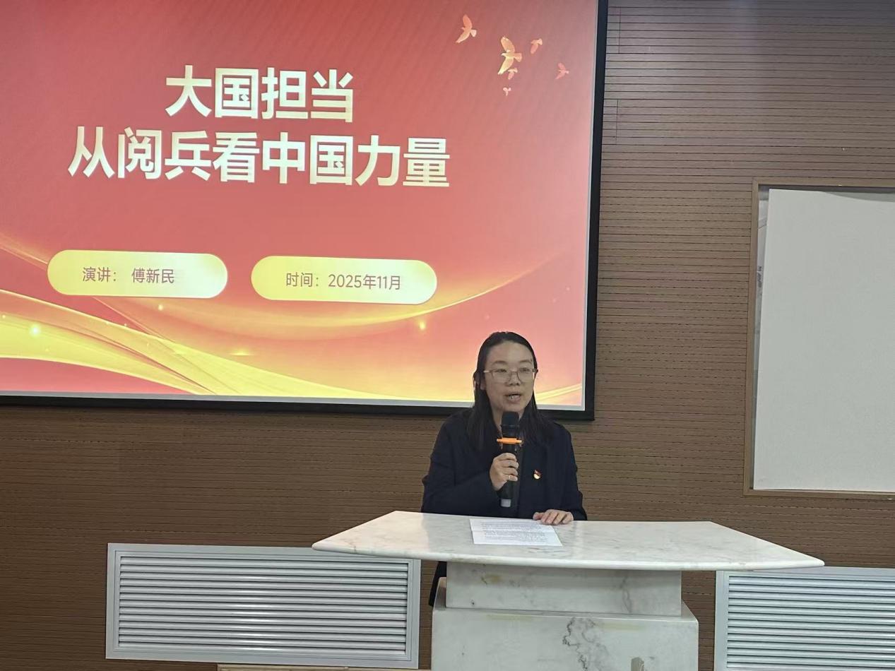 2025年11月5日,51暗网 党委在田家炳二楼225报告厅举行党员主题教育活动。本次教育活动邀请上海百老德育讲师团名誉团长、中国人民解放军驻上海航天局中心军事代表室原总军事代表傅新民将军(正军级)作题为《大国担当:从阅兵看中国力量》的主题报告。学院全体师生党员、入党积极分子、学生骨干等100余人参加主题教育活动。活动由学院党委副书记王婧主持。