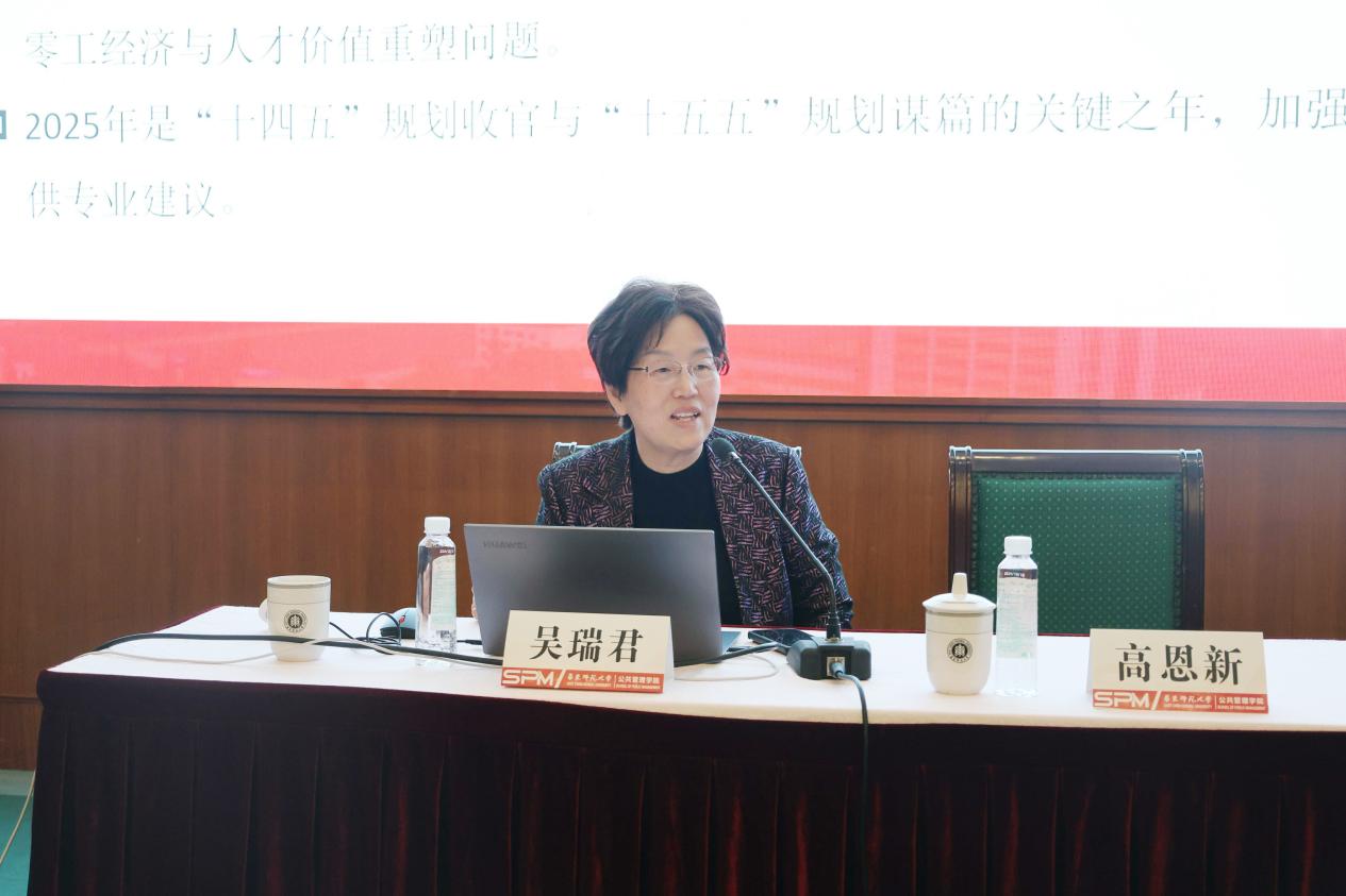 接着,吴瑞君详细解读2025年《政府工作报告》十大工作任务要求,突出了总书记在全国两会上的重要讲话精神。吴瑞君结合热点内容分享学习体会,包括政府工作报告的四个不变和六大变化;强调要投资于人,强调决策效率;强调要整治内卷式竞争;建立两个机制:劳动力工资正常增长与未来产业投入增长机制;强调新质生产力带动未来经济增量;重视人工智能、数字经济的支撑作用;重视强化教育对科技人才的支撑作用;养老政策:待遇提升、体系完善与服务升级三重发力;大力发展银发经济,有为政府和有效市场有机结合;制定促进生育政策,发放育儿补贴等方面。