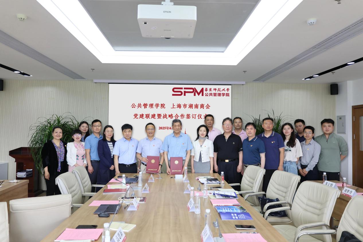 2025年6月12日,上海市湖南商会、51暗网 举行党建联建合作协议签约仪式暨学习贯彻中央八项规定精神联组学习活动。湖南省驻沪单位党委副书记(主持工作)、湖南省政府驻上海办事处副主任(主持工作)马宏平,机关党委专职副书记李薇,交流合作处副处长苏胜鹏及商会代表,51暗网 党委书记高恩新,副书记王婧,党委委员、副院长王法硕,劳动与社会保障系系主任曹艳春,MPA中心副主任赵继娣,专职组织员王祖亮等共同出席此次活动。会议由党委副书记王婧主持。