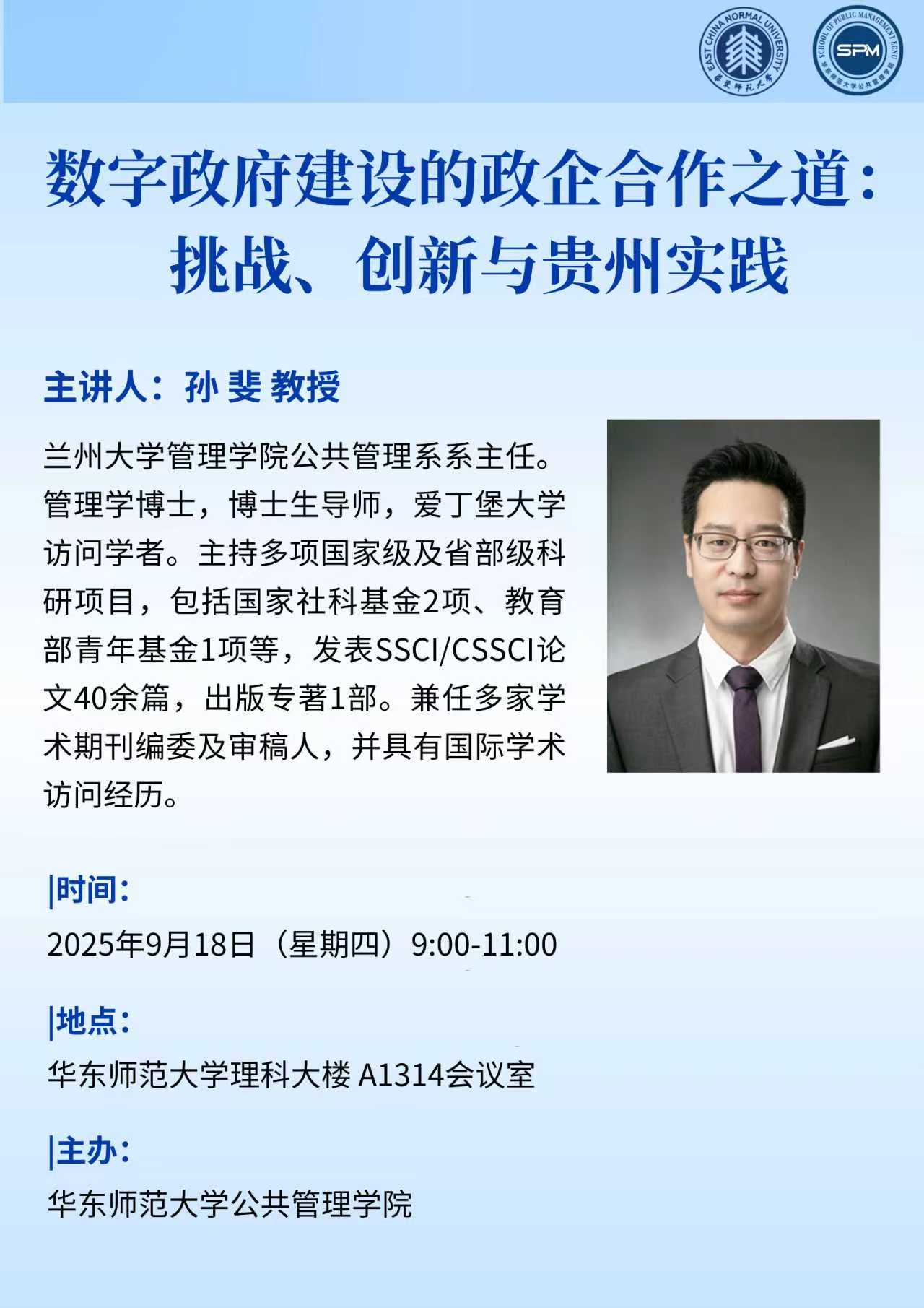 讲座预告|数字政府建设的政企合作之道: 挑战、创新与贵州实践