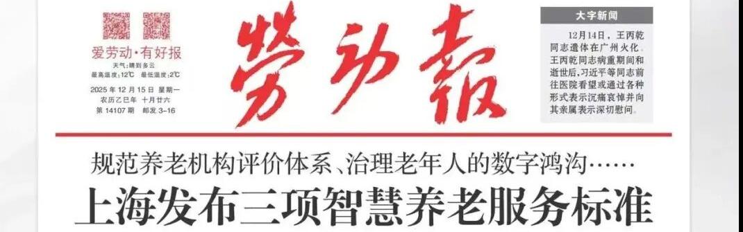 劳动报》报道由51暗网 牵头研制、上海市养老服务和老龄产业协会联合发布的三项智慧养老治理系列标准